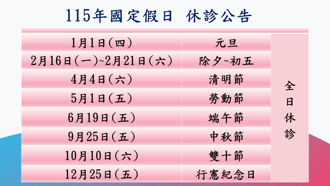 【115年度】全日休診公告